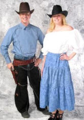 overskirt accented w/ruffles, matching neck detail w/black fringe, silk flowers